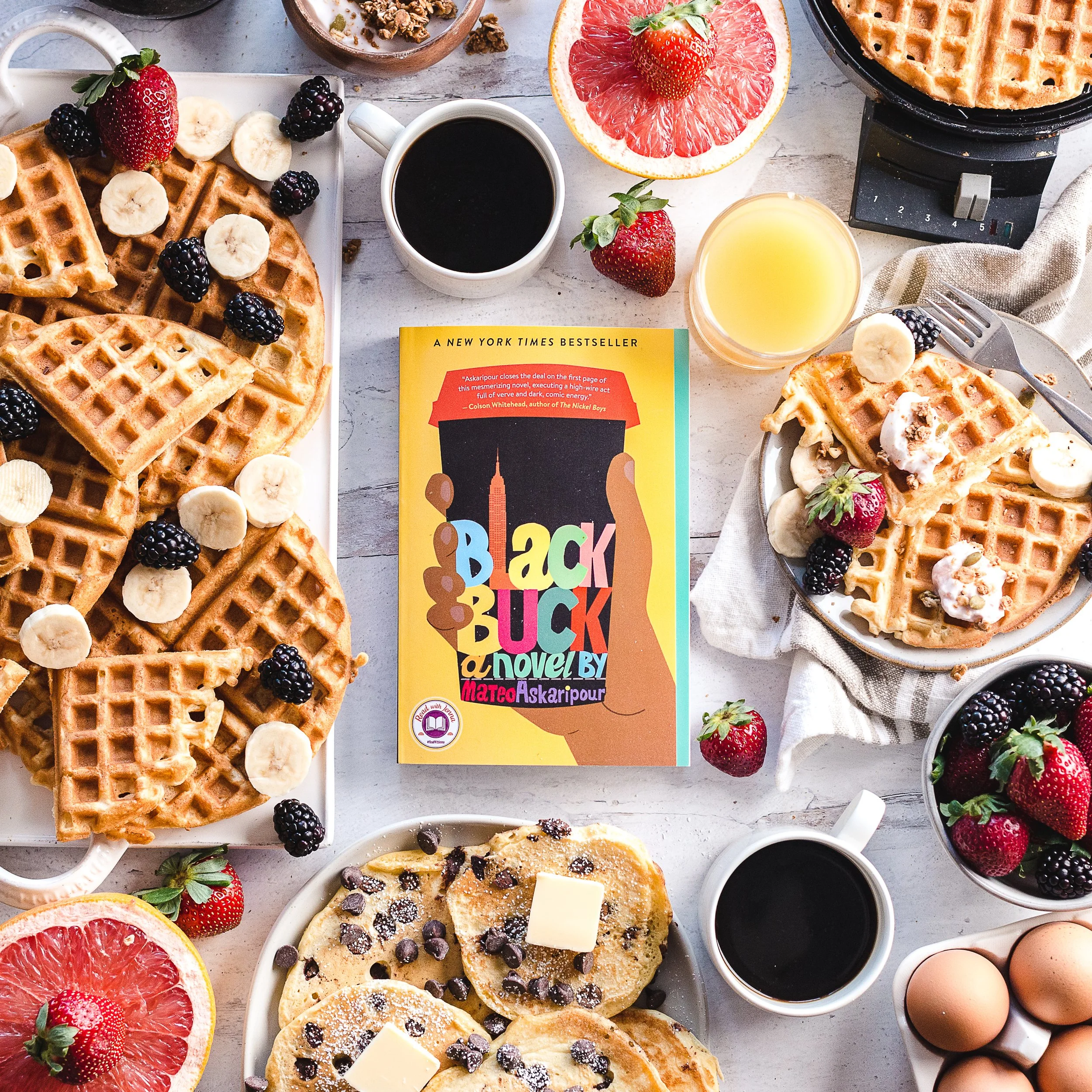 With its many coffee-as-metaphor filled breakfasts, Black Buck has plenty of pancakes, like these chocolate chip ones from Darren’s first meeting with Rhett. But after doing a deep dive into the author’s food choices thanks to @grubstreet feature “Author Mateo Askaripour Has a Waffle Routine” I had to make a gigantic batch of homemade waffles. Like Askaripour, I have an ancient waffle maker - and it just seems to get better with age! (He likes his waffles with sunflower seed butter, in case you’re wondering.)