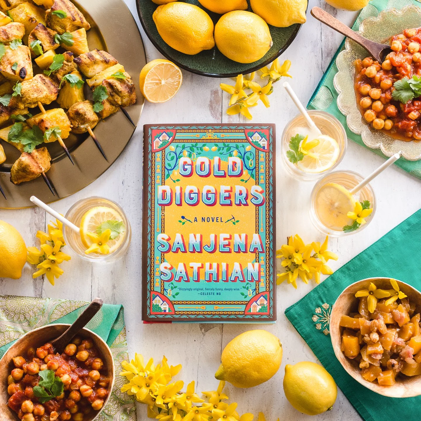 Isn’t this cover - inspired by Indian matchbook art - totally amazing? To match the colors, I made chickpea masala, curry chicken and pineapple skewers, mango chutney - and obviously, some of the gold-infused lemonade at the center of the story. Special thanks to my mom for loaning me these beautiful napkins from India - they reminded me of the emerald green sari mentioned in one of the final chapters.
