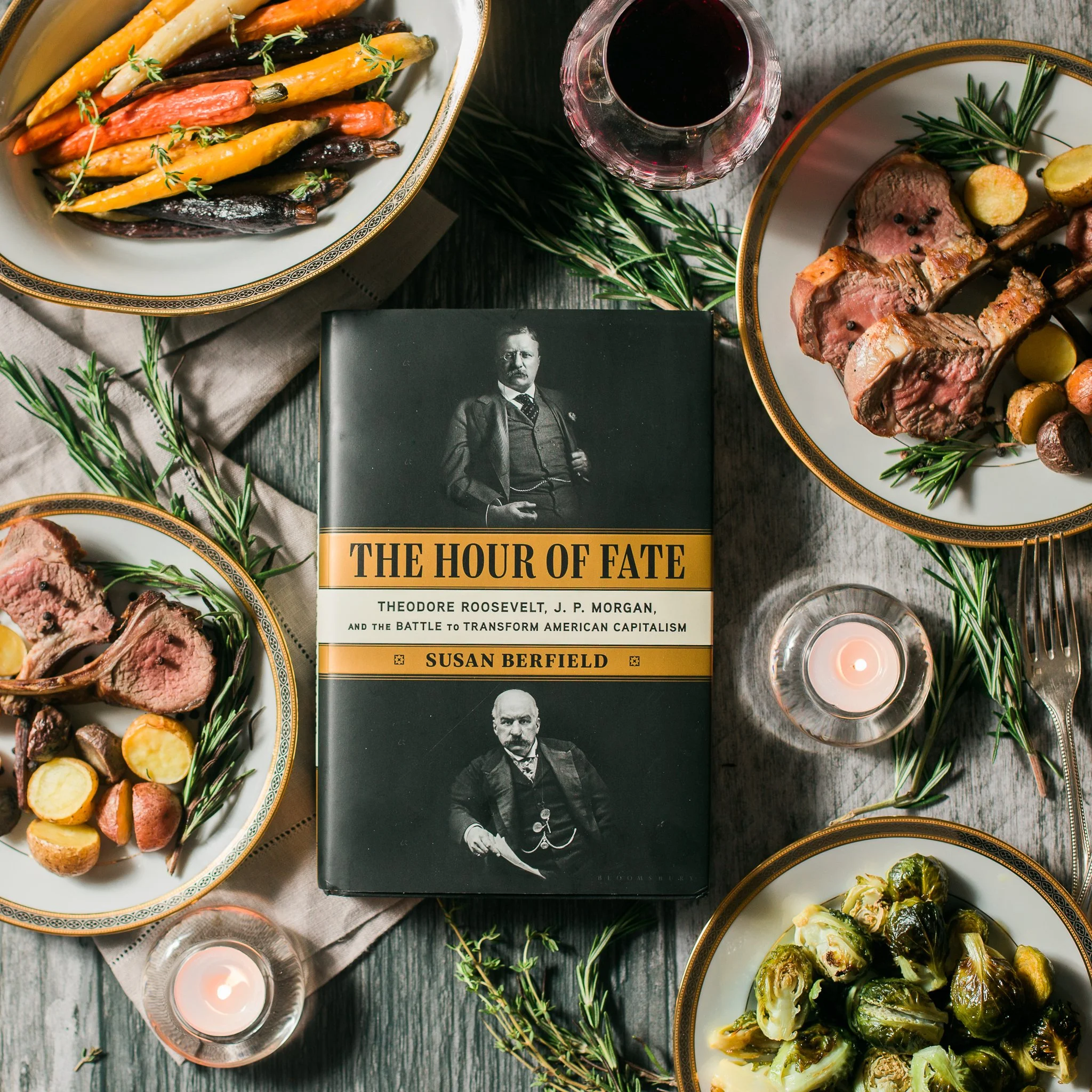 In five years of bookcooklook-ing, I've never prepared a meal for a U.S. president so this was a lot of pressure! Roosevelt had an extroverted, fun loving approach to family life and dined on relatively understated White House meals of "chicken, fish, or a chop." Lamb chops were an easy choice for this post, especially when the alternative was J.P. Morgan's private dinner club menu of foie gras, roast suckling pig and terrapin soup! Huge congratulations to Susan Berfield on this captivating, meticulously researched, reads-like-fiction debut! So proud of your accomplishment!