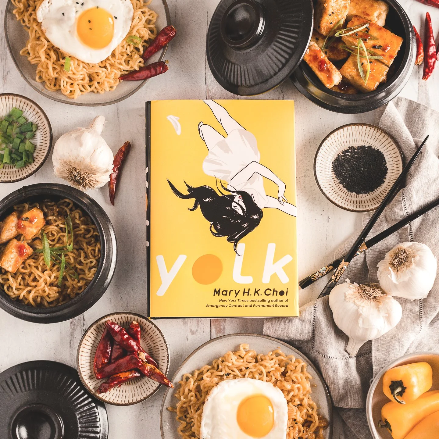 Yolk has endless food, though the two dishes that stayed with me were June’s mapo tofu, and Jayne’s Shin Ramyun Black. The tofu and ramen in the story inspired this (milder) feast of stir fry tofu and miso garlicky butter ramen, all with an egg because: book title! Also, it’s a fact that almost all meals are best with a runny egg on top.