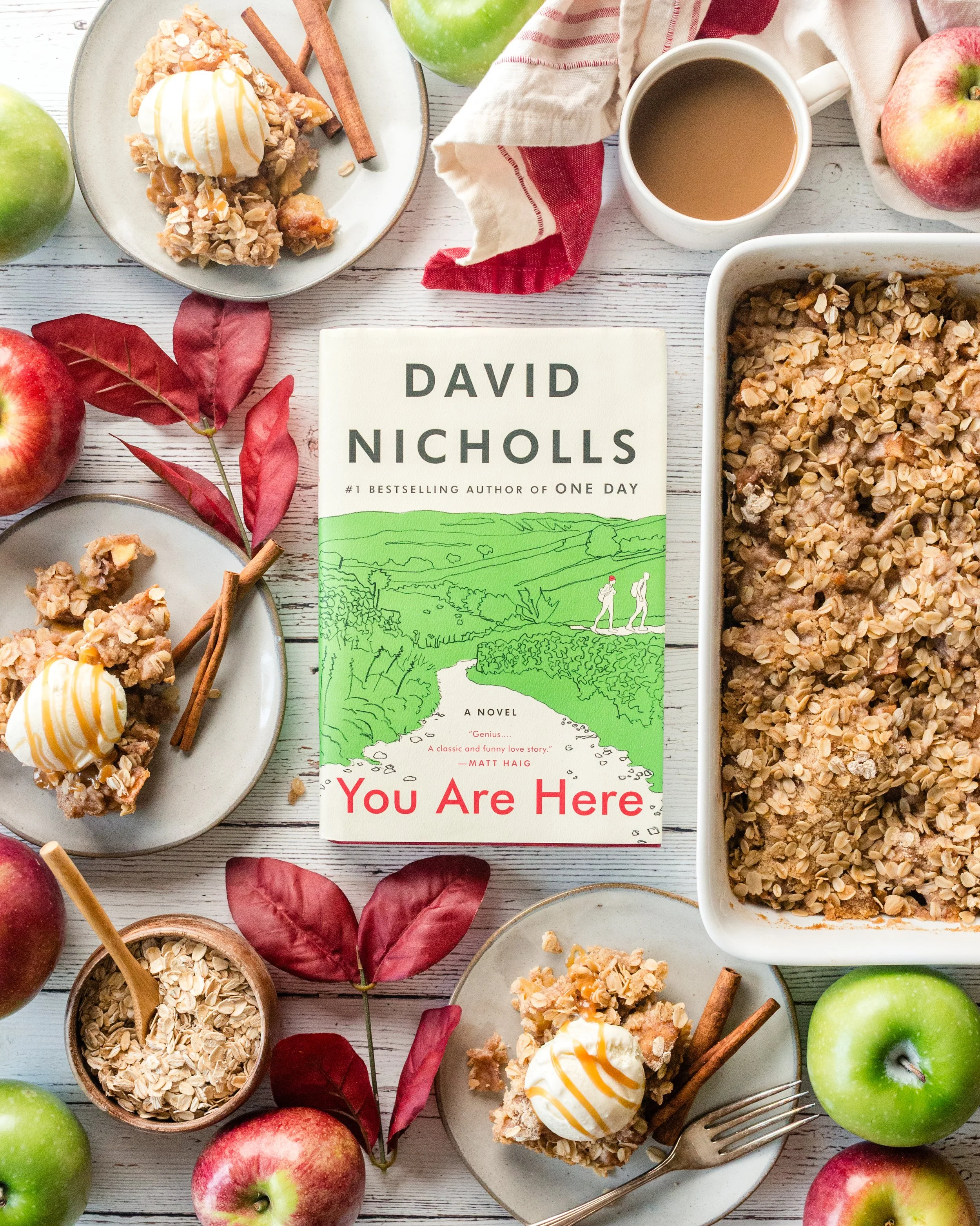 Ever since Michael snacks on an apple mid-hike, I’ve been thinking about how perfect granny smiths and honeycrisps would look paired with this cover, accenting the apple-red letters and The Giving Tree-ish colorway. Apparently crumble originated in England during World War II rationing when pastry dough for pie was scarce. I’m going out on a limb to say I like it better than pie! And this book has the coziest vibe that’s perfect paired with warm apple crumble, rich vanilla ice cream, and a cup of English breakfast tea.
